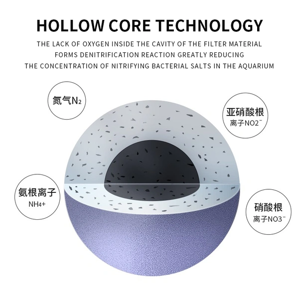 Hollow core technology creates anaerobic environment Promote the completion of denitrification process,Create a magnetic field for negative ions Improve the efficiency of nitrification reaction